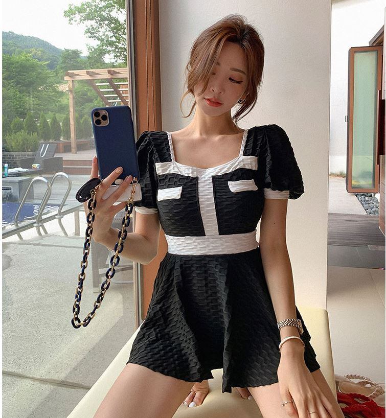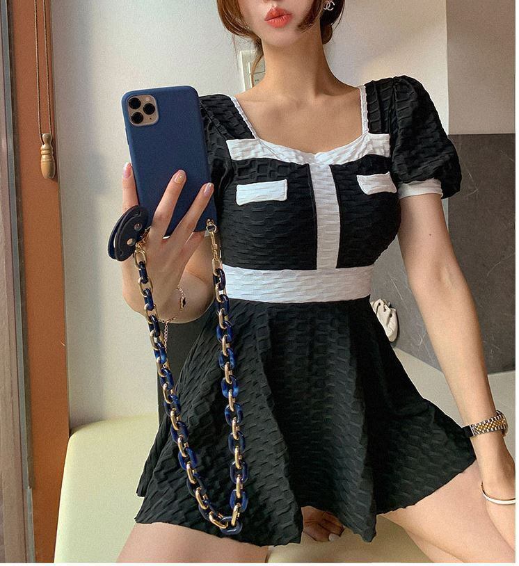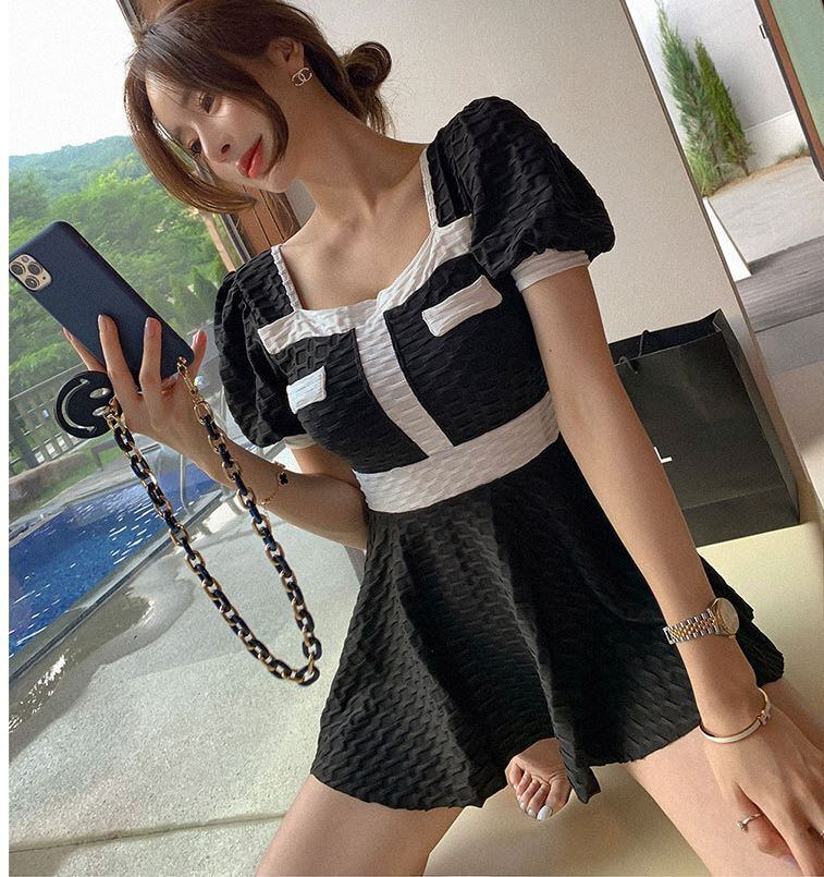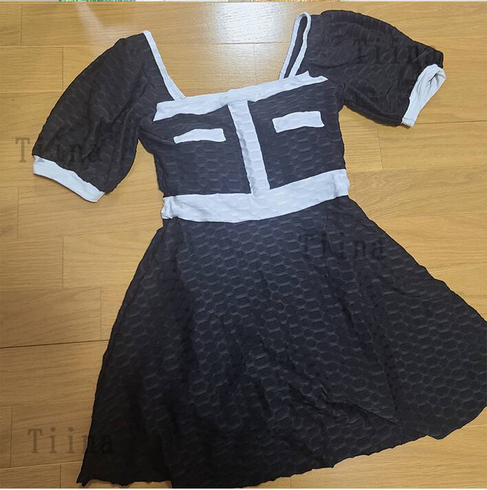 即納 速達 M L XL 黒 セクシー バイピング ワッフル スカート 韓国 モノキニ タンキニ ワンピース 水着 体型カバー tika sugar コスプレ