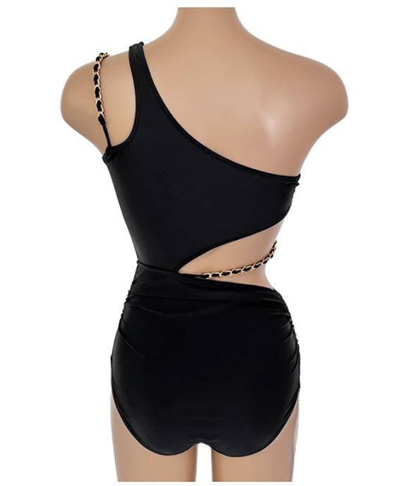 即納 速達 M 黒 セクシー チェーン パンツ 韓国 モノキニ タンキニ ワンピース 水着 体型カバー tika sugar コスプレ